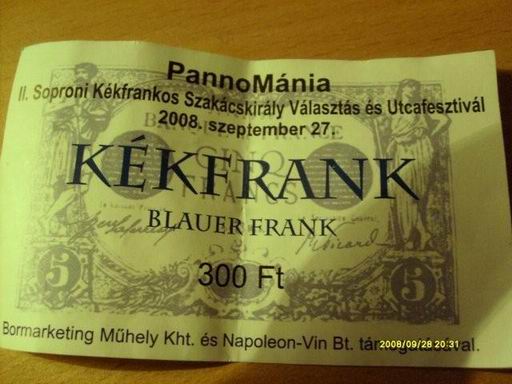 Utcafesztivállal egybekötve második alkalommal rendezték meg szombaton a Soproni Kékfrankos Szakácskirály Választást a Hotel Sopron udvarán. Ez évben a Soproni Polgárőr Egyesületet kérték fel a rendezvény biztosítására és az éjszakai órákban a rendezvénysátor és a benne levő technika őrzésére. A polgárőrök 09.26-án 19 óra és 09.28-a reggel 7 óra közt folyamatos jelenlétükkell biztosították a rendezvény helyszínét. A legenda nyomán a PannoMánia fesztivál területén a belső fizetőeszköz a kékfrank volt, mely 300 forintnak felelt meg. A vendégek kékfrankkal vásárolhattak italokat, ételeket és vehettek részt a különböző játékokban (rodeó bika, légvárcsúszda, Napóleon kardja, stb.). A Buschenschank-sátor színpadán egész nap színes programok szórakoztatták az érdeklődőket. A nap utcabállal zárult.