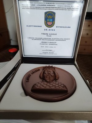 A megyei polgárőr szövetség alapítása óta végzett elismerésre méltó munkáját megköszönve posztumusz „SZENT LÁSZLÓ” emlékplakett elismerésben részesült: